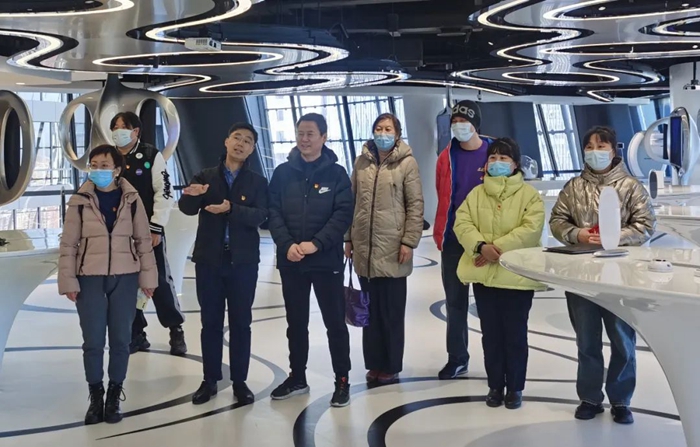 丽泽商务区以智慧设备设施等多个智慧应用为业务支撑体系,形成多种场景一体式智慧服务输出模式,全面提升用户的服务体验。此次参观的丽泽SOHO,是一座商业办公综合体,其中位于顶层的丽泽云客厅,于2023年6月列为主题教育教学点。