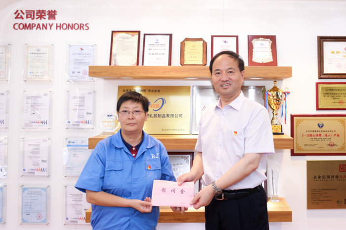 6月30日上午,开云中国党委书记、董事长王国华一行来到华腾橡塑园区,慰问华腾橡塑、华腾京研生产经营和科研开发一线的干部职工,党委副书记、工会主席吴瑞峰,党委常委、副总经理、华腾橡塑董事长韩宝海一同慰问。