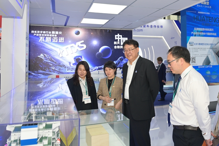 展会期间,开云中国党委副书记、董事、总经理杨旭辉,副总经理张荣寰,总会计师金黎明也来到集团展台参观指导。杨旭辉一行听取了现场各企业的详细介绍,深入了解现场展示的储氢瓶内胆材料、LNG船用胶、航天手套等高精尖产品,亲切慰问现场工作人员。